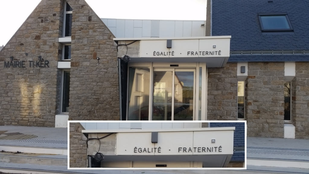 Et pendant ce temps à Larmor, les petits panneaux lumineux installés sur la commune éclairent faiblement les rues désertes. Les rares promeneurs s’attarderont peut-être devant ce message qui crépite : « pensez à élaguer les arbres de votre propriété. Votre responsabilité pénale peut être engagée si des branches surplombant le domaine public compromettent la sécurité des véhicules et des piétons ». Que dire ? Simple maladresse ou ultime provocation ? A Larmor en tous cas, les citoyens ne paraissent pas tous égaux devant la loi. Sur le fronton de la Mairie, la devise de la république est déjà amputée du principe de « Liberté », peut-être doit-on également retirer celui d’« Égalité » ?... Ne resterait donc que la « Fraternité » ? M’est avis que cette valeur n’a pas davantage sa place au village que les deux précédentes… voir ici
