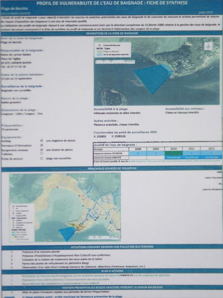 Une fiche de "profil de vulnérabilité de l'eau de baignade" est fournie. Cette plage est peu fréquentée en période estivale. Cette plage figure sur le site « baignades.sante.gouv.fr ». Voir détails ici